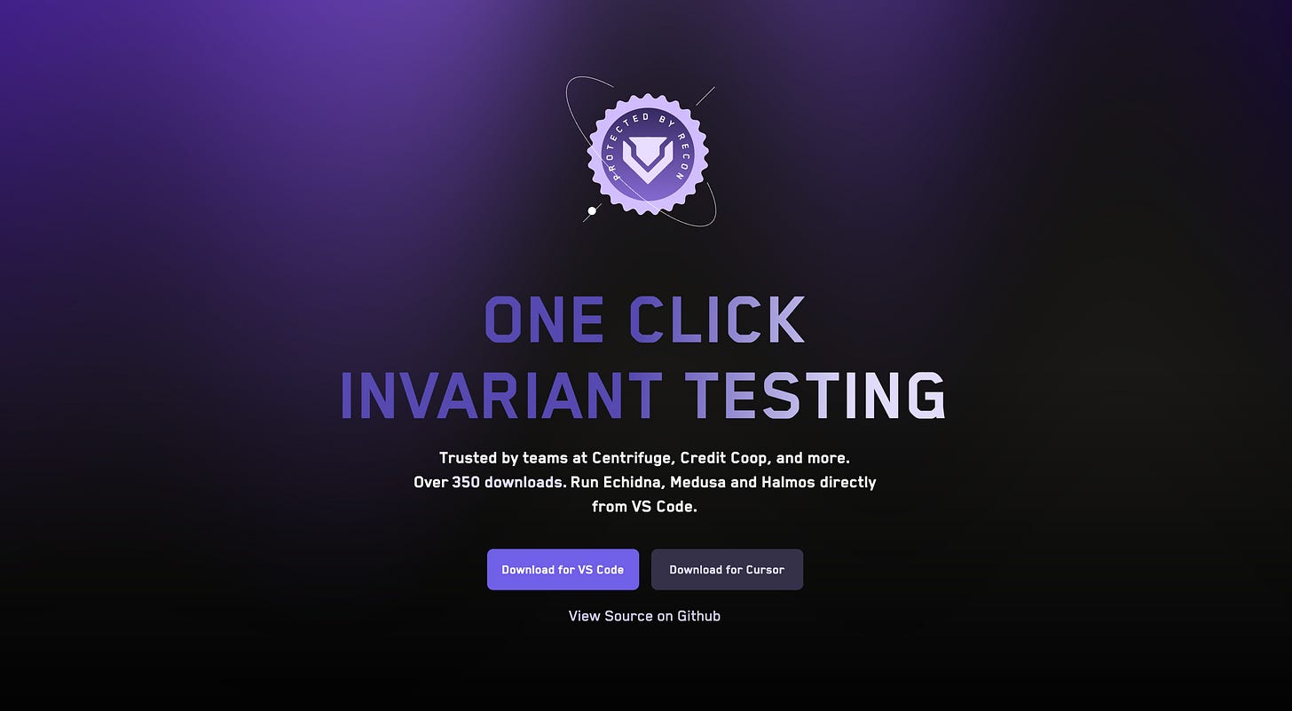 While trying to reach this goal we realized the primary thing stopping most developers from using invariant testing was the setup time. We created the Recon extension to reduce this setup time and make developers’ jobs easier, so that with one click you can: scaffold a new invariant testing suite, run fuzzers and formal verification tools and automatically convert broken invariant reproducers into Foundry unit tests, reducing the setup time from days to hours.